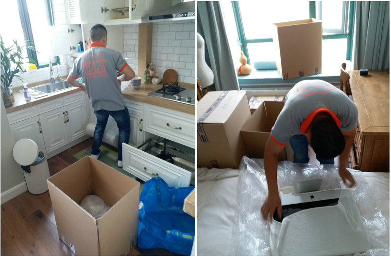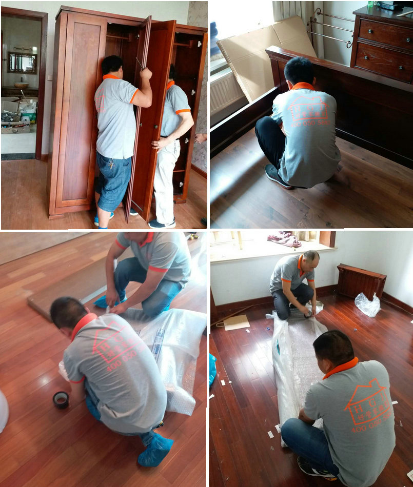 按着预约搬家时间准时到达搬出地点,对零散物品进行分类打包、家具家电拆卸做防震、擦、磨、磕包装,厨房易碎物品的防震保护包装装箱贴标,有专业女员工对个人隐私物品整理打包入箱