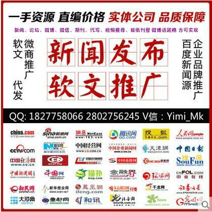 无论您是发布新产品、发起新的营销活动、召开重要会议,还是公布业绩、吸引投资,您都可以借助弋米网络传媒的新闻稿营销服务,把您的信息快速有效地传递到目标受众。弋米网络传媒将企业或机构的会议新闻稿、活动新闻稿、上市新闻稿、展会新闻稿等等广泛传播到国内媒体和新闻网站;欢迎索要套餐资源客服QQ:1827758066 2802756245