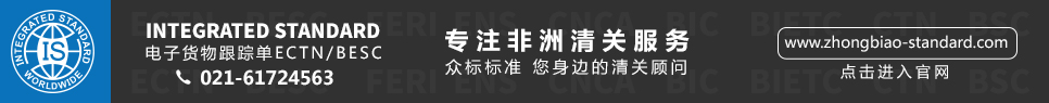 (众标标准 021-61724563)INTEGRATED STANDARD(众标标准)是一家针对出口贸易领域的政府机构代理服务提供商。基于长期且良好的政府合作关系,我们目前可以直接向国内贸易商提供所有出口至非洲国家的电子货物跟踪单服务。