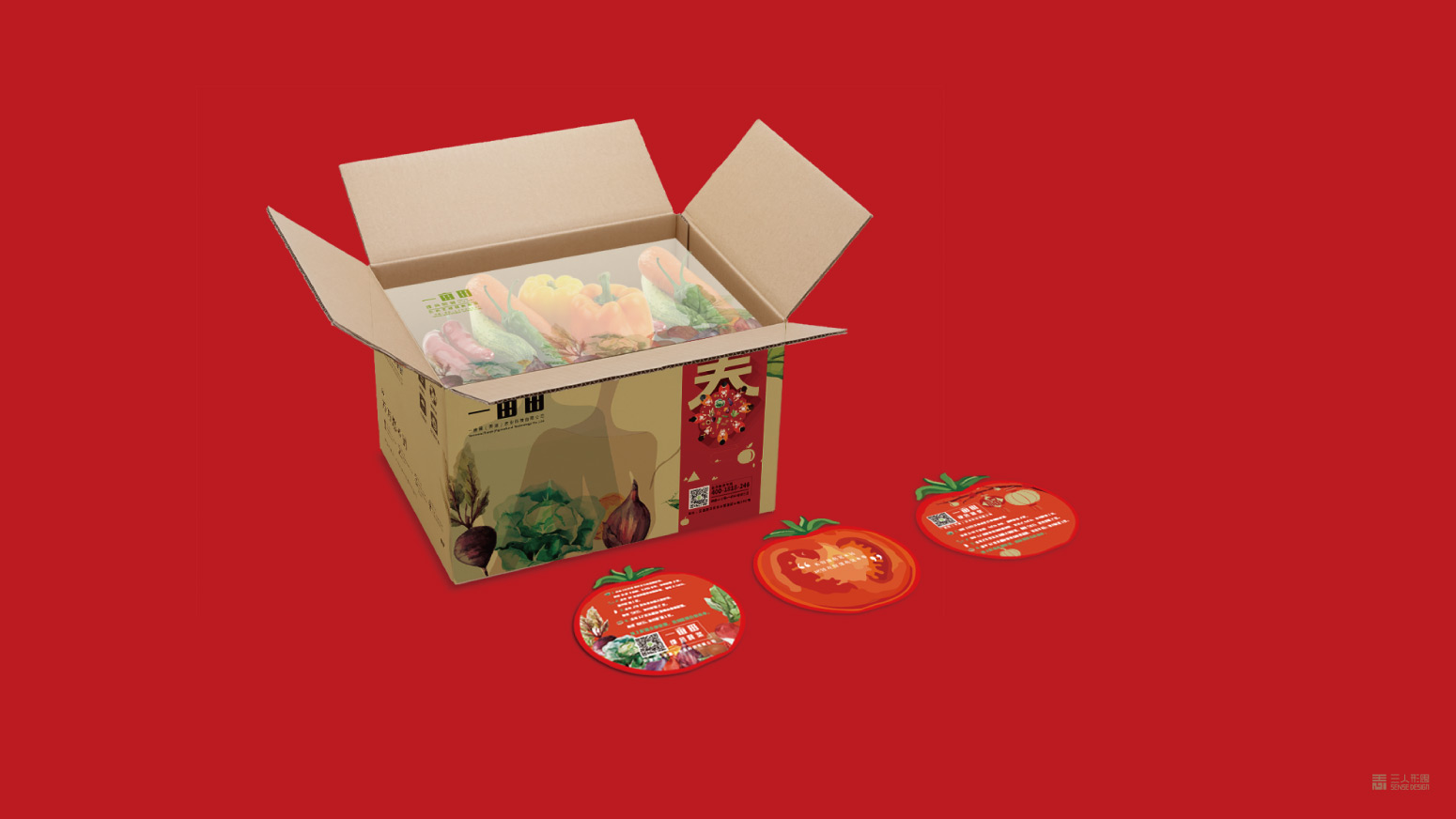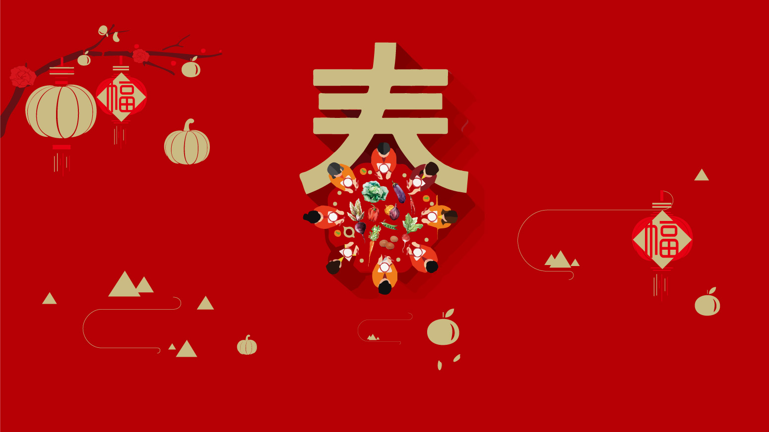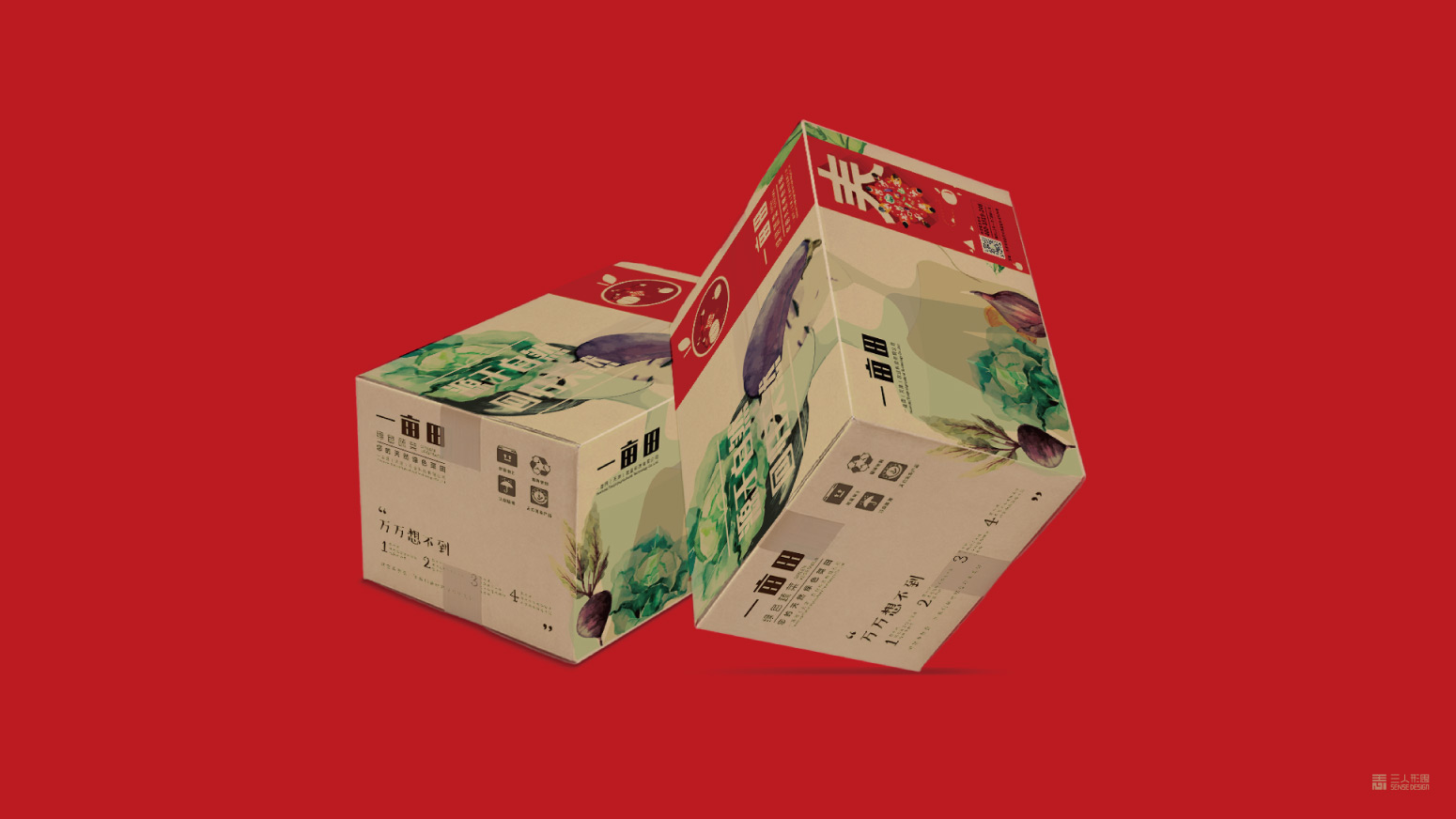 我们还设计了春节期间使用的主题包装。主画面的设计是对春字的变形,将下半部分“日”图像化,一家人围在一起吃年夜饭、热闹欢喜过春节的场景。“年夜饭”,“团圆饭”。这是一年之中家庭里最重要的一餐,使用一亩田的食材才最美味最放心。在经典包装盒上做了一些改动,加入红梅,灯笼,祥云等元素保持原有辨识度,又体现了春节的喜庆隆重的氛围。
