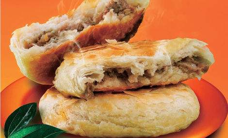 馅饼,汉族民间家常食品。制作方式有煎 烤 焗等,由饼皮包著馅料。馅料可以是各类型的食材,例如肉类、蔬菜、海鲜及蛋等,味道以北方的咸香鲜口味为主。带馅的饼,用面做薄皮,包上肉、菜等拌成的馅,在锅上烙熟。烘烤食物,馅饼皮包含水果、蔬菜、奶油、奶酪、巧克力、奶油冻、开胃成分或糖。