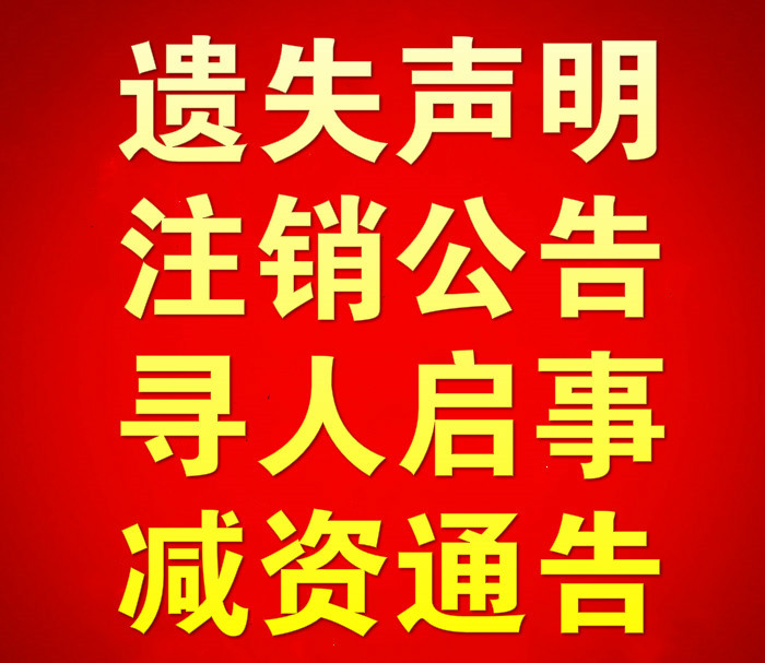 遗失声明、注销公告、减资公告