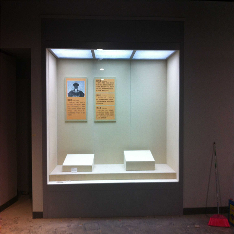 2、博物馆展柜 可根据用户的要求来设计和订做。包括博物馆展柜所用的材料、灯光、尺寸、形状、颜色搭配等。