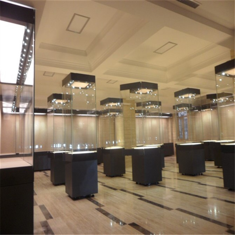 采用方钢龙骨架,碳钢板柜体,专用铝型材,轨道,铰链系统,夹胶钢化玻璃,灯具,锁具等材料,通柜的开启方式大多是先前后推拉,在左右平移的方法,还有一种就是普通通柜在展柜侧面开一个单扇门的开启方式。