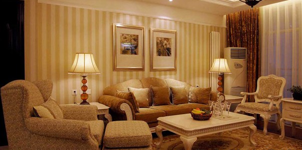 欧式风格的造价比较贵一点,就拿墙面处理来说,乳胶漆与墙纸,装修材料的价格就比上去了。呵呵,不多说,且看这套房子欧式风格装修效果图: