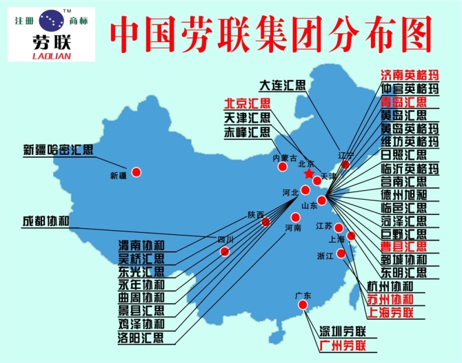 力)外包综合服务商。在青岛、北京、上海、天津、济南、苏州、杭州、广州八大城市我们都居于市场领先地位。劳联至今在全国的二十一省份已经拥有70余家分支机构。