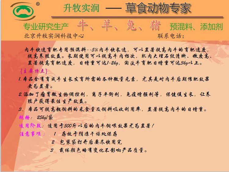肉牛快长速-肉牛后期快长膘的预混料 北京升牧实润