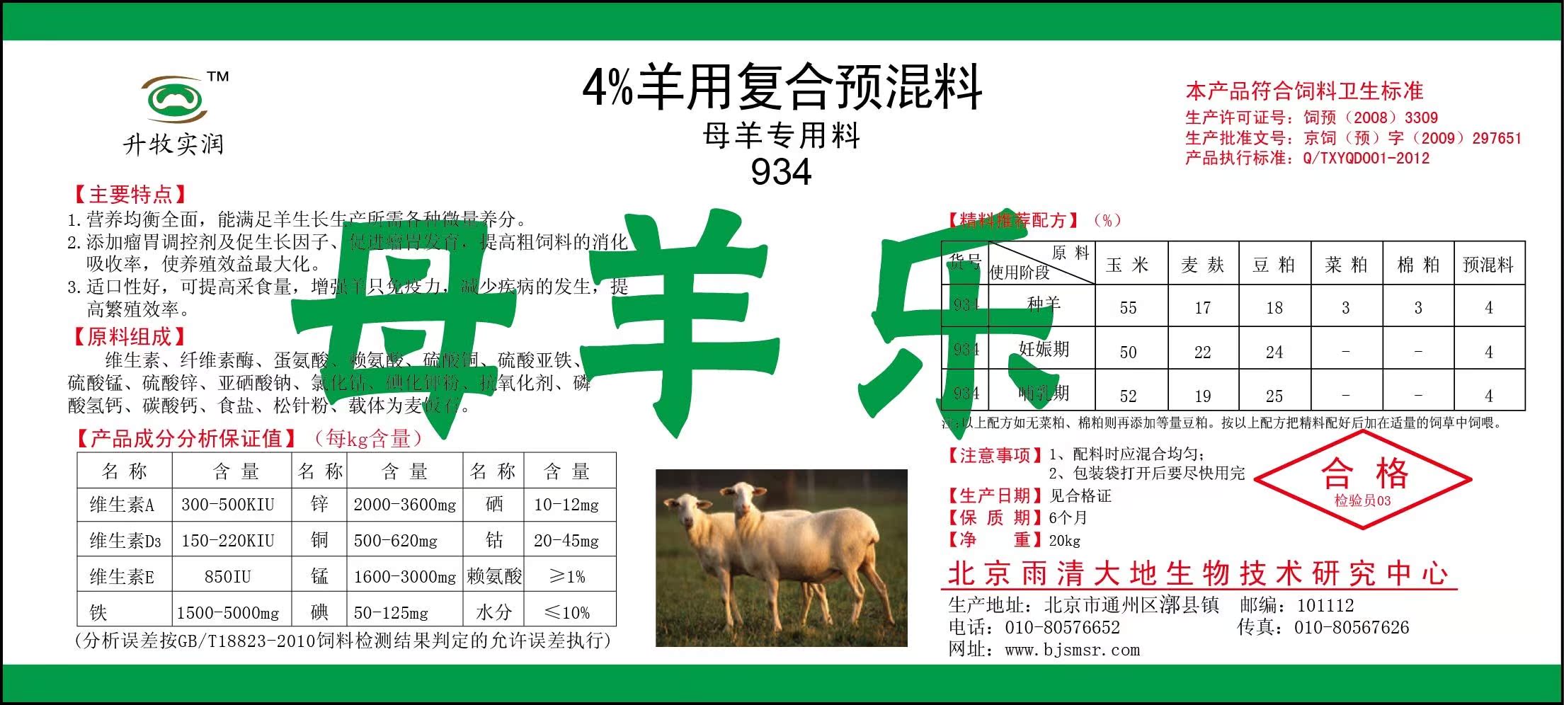 繁殖母羊种羊预混料价格效果 母羊乐-母羊复合预混料 北京升牧实润公司