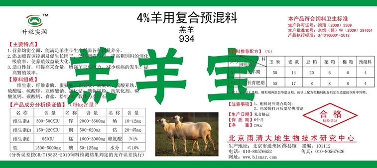 北京升牧实润公司羊系列饲料预混料添加剂产品主要有: