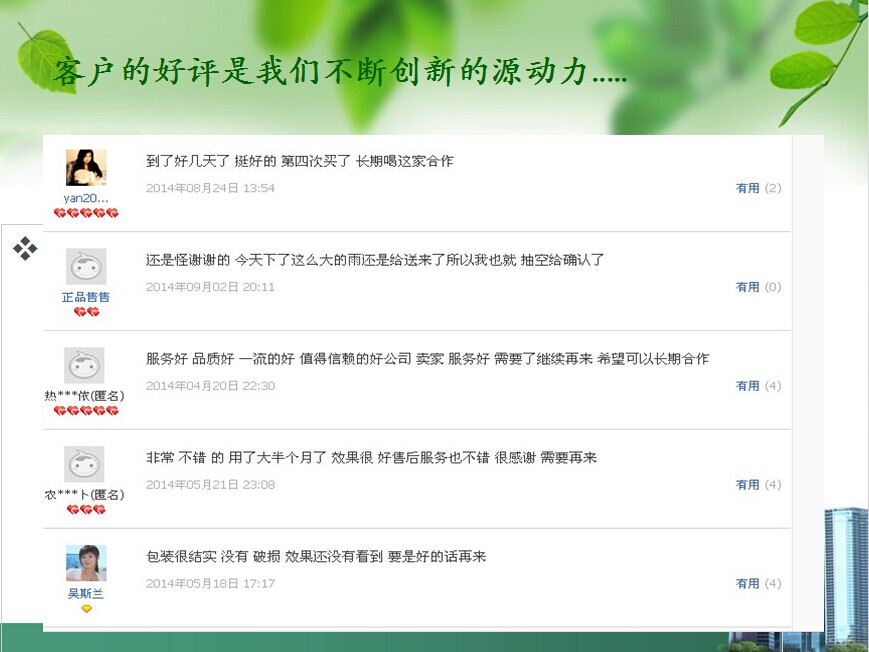 我们敢于保证质量 只缘于用户的好评