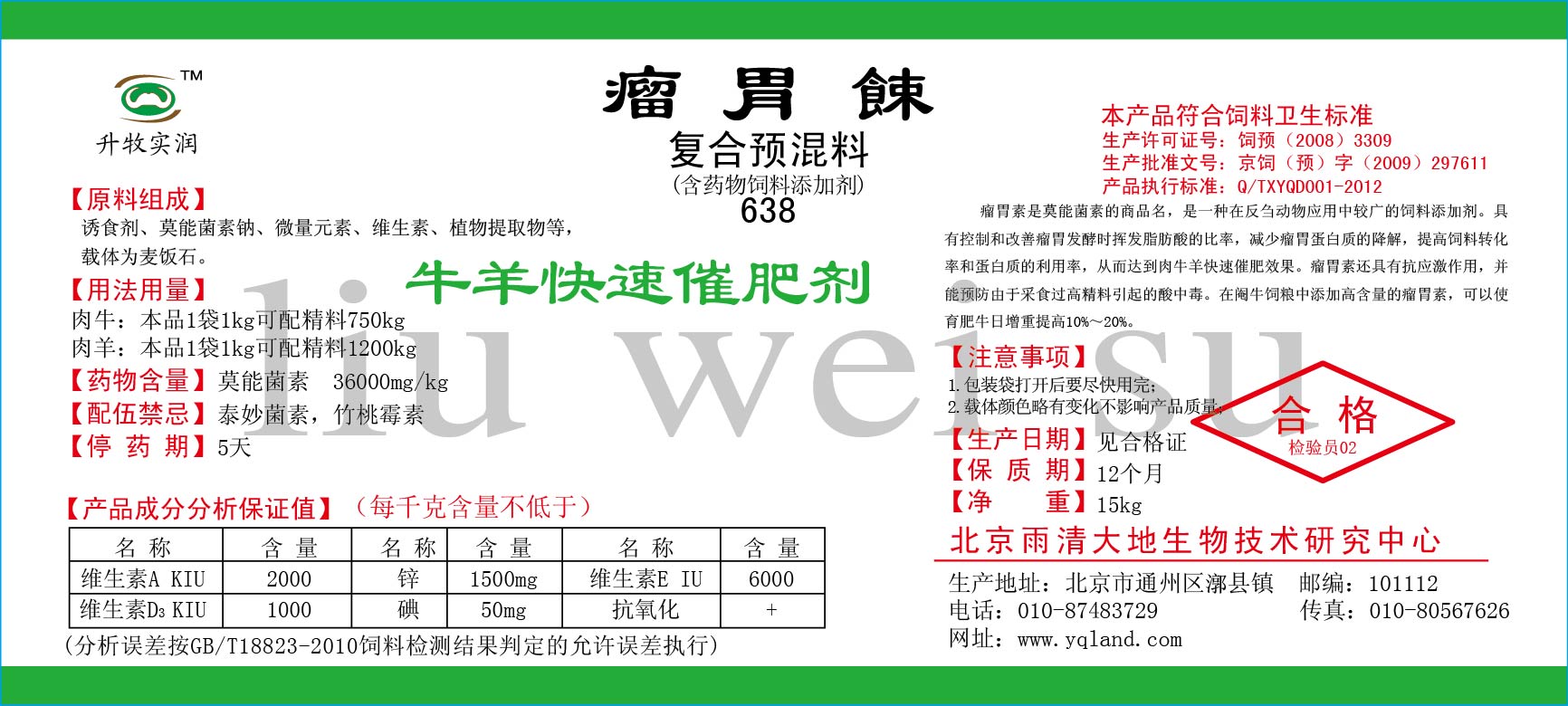 1.本品含有育成牛生长发育所需的各种微量元素,尤其是对肉牛后期催肥效果更为显著。