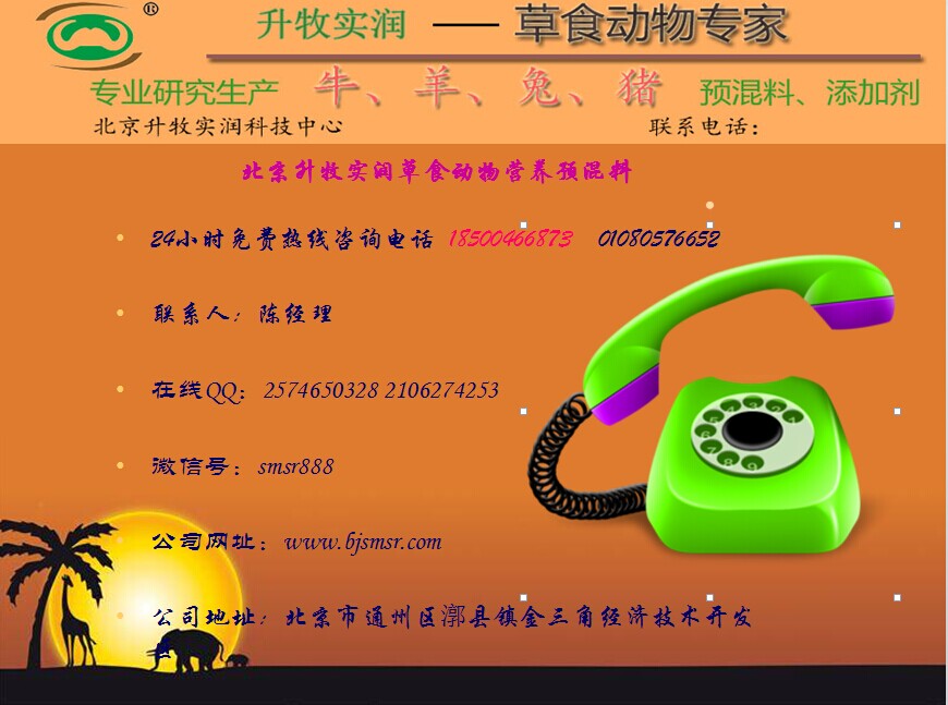 北京升牧实润绿色饲料是专门研制、开发和生产兔 牛 羊饲料添加剂\预混料系列产品的专业化机构。它依托中国农业科学院、中国农业大学北京市水产研究所的农业科学技术优势,自成立以来,坚持质量第一、信誉第一、服务第一的原则,锐意创新、不断进取。
