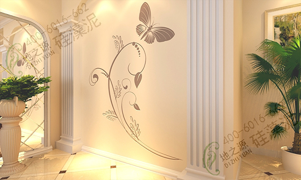 2、挂尘、集灰的清洗方式 墙壁挂尘一般是由于空气过分干燥,浮尘携带静电吸附所引起的。因硅藻泥对空气湿度具有良好的调节平衡作用,壁材表面是亲水的,可以有效减少静电现象,所以与其它材质饰面相比较,硅藻泥墙面壁更加不容易挂尘、具有一定自清洁功能。