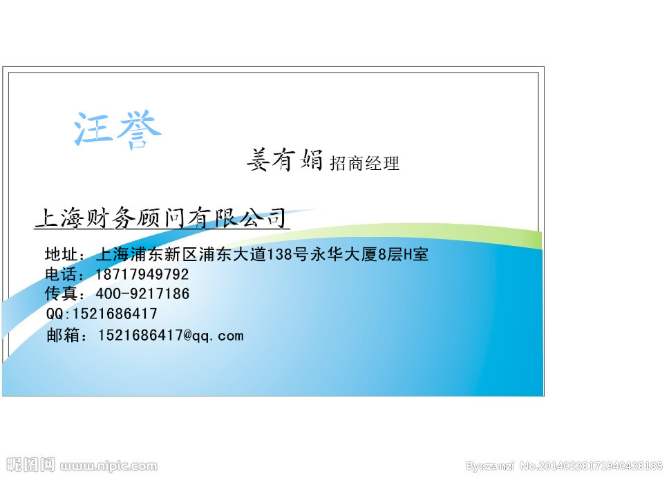 汪誉(上海)财务顾问有限公司,以优于同行业的专业服务来为有志向的您服务,辅助您为你的成功之路开个好头,在工商注册、收转股权、代理记账、网站建设、商标注册等方面,我们会拍专业人员为您解决相应的问题,在第一时间为您制定出适合您个人的相应方案,完整的一条龙服务,为您分忧!
