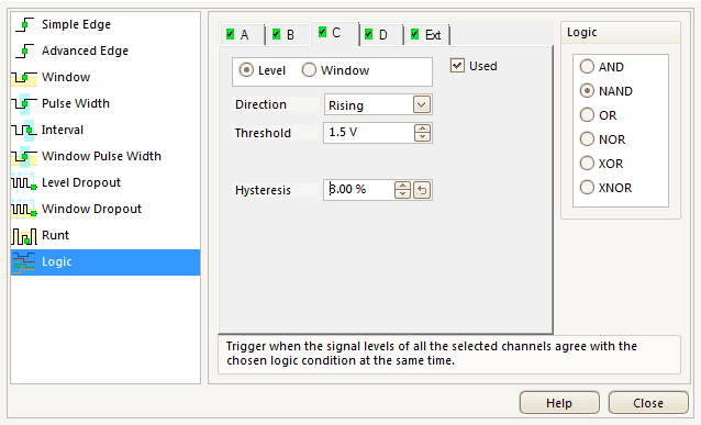 除了大多数示波器都有的各种触发之外,PicoScope 6000系列示波器还提供行业领先的整套先进触发模式,包括脉冲宽度、矮脉冲、开窗、逻辑和漏失触发。