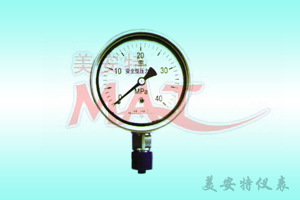 全不锈钢安全压力表顶部设有冲液塞及一个内部补偿膜片,可在现场冲液型。安全压力表具有耐震和阻尼性能,可以防止因震动对压力表内部的损伤,同时还可以润滑内部元件,减少腐蚀。