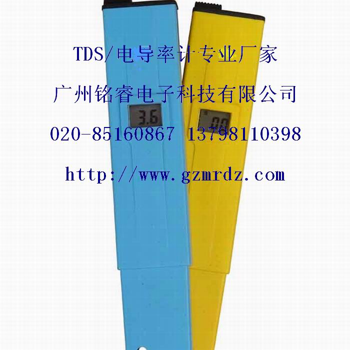 广州铭睿电子笔式电导率计(CD310/CD303/CD304),大屏幕显示,功能齐全,精度高,价格低廉。具有以下特点:液晶屏幕大--比同类产品大一倍以上,示值清晰;设计合理--笔端电极可直接插入饮水瓶口中测量,笔套可作被测液容器,使用极为方便;测量快速--由于精巧裸式的传感元件,5-30秒可完成一次测量;清洗方便--电极护套可拔下,便于探针和护套的清洗(探针用钛金制作)。应用范围:纯净水生产和饮用、电渡液、锅炉用水、鱼缸用水、游泳池水的洁净度、照相冲洗液、井水,深井水、实验室、水产养殖、食品加工、家庭,办公室、理化教学、电离水化妆品、市政供水、旅行保健。笔式电导率计(CD310/CD303/CD304)是广州铭睿电子经典品牌的电导率计,以高稳定、高可靠、使用简便、价格低廉而风行全球,深受广大用户的青睐。