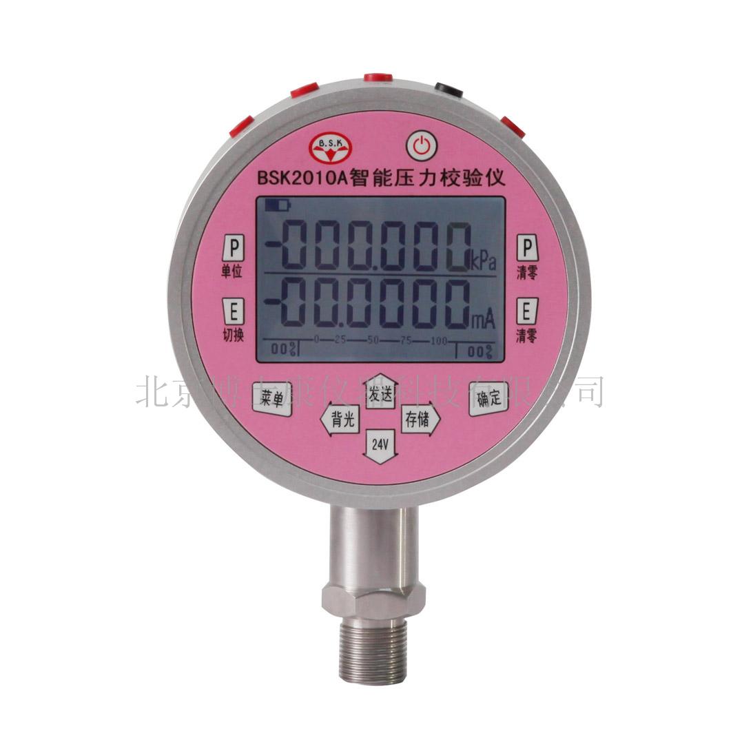 BSK2010A智能数字压力校验仪是一款功能强大的便携式专业压力校验仪,具有高精度测量压力、电流、电压,同时可以测量开关量、环境温度及DC24V电源输出功能。附加功能有:压力检漏、压力开关触动时压力值的记忆、测量数据的存储与提取等。低功耗模块化设计。可充电锂电池组,一次充电可连续工作100小时以上(24V输出不带载)。方便用于校验精密压力表、一般压力表、压力变送器、压力传感器、压力开关、血压计、等压力仪器仪表。
