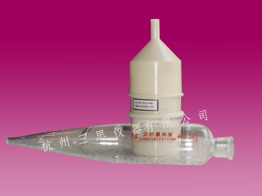 1、结构及技术参数:含砂量由一只装有200目筛网的滤筒和与滤简直径相应的漏斗及一只具有0~100%刻度的玻璃测管组成。含砂量刻度:0%~15%每小格0.5%,15%~30%每小格1%。