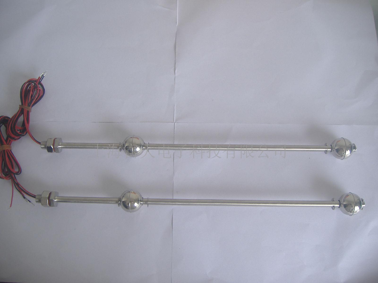 连杆浮球液位开关与小型浮球液位开关原理基本相同,通常将密封的非磁性金属或塑胶管内根据需要设置一点或多点磁簧开关,再将中空而内部有环形磁铁的的浮球固定在杆径内磁簧开关相关位置上,使浮球在一定范围内上下浮动,利用浮球内的磁铁去吸引磁簧开关的闭合,产生开关动作,以控制液位。常开和常闭是没有注入液体时的状态。