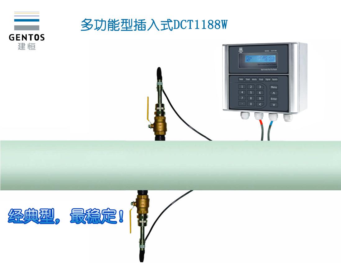 建恒DCT1188W超声波流量计由变送器、传感器两部分组成。插入式探头可在线带压安装,具有安装稳固,现场无需停产等特点。特别适合用于含有少量颗粒、气泡的单一液体介质的流量测量。
