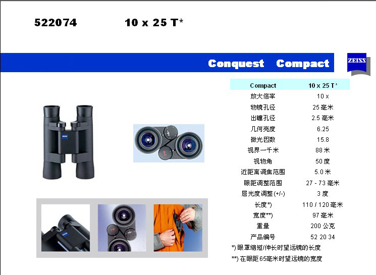 商品名称: 10×25BT*蔡司望远镜