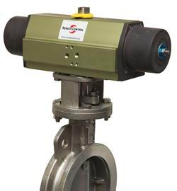 RC200系列90°转角气动阀门执行器分为单作用弹簧复位(RC200-SR)和双作用(RC200-DA)两种,其输出转矩为10-4000Nm、最大压力10bar、最低温度-40℃、最高温度150℃,适用于90°旋转阀门开关和调节控制。它采用拨叉式结构原理:1开/关位置时输出转矩增大,调节特性好。2轴承传递动力,摩擦小,可靠性高,寿命长。3结构紧凑,体积小(比齿轮齿条结构小30%),效率高。其缸体材料为铝合金(阳极处理),驱动轴和螺杆为不锈钢,其联接方式符合DIN3337/ISO5211和VDI/VDE3845(Namur)标准,可方便地与阀门和相关附件连接。