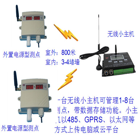 通过RFI射频与无线测点进行通信,采集无线测点温湿度数据 |