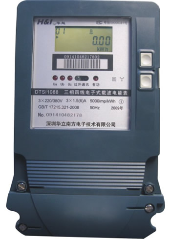 DTSI1088 C型三相四线电子式有功载波电能表是根据国家有关技术标准、规程和广大电力用户的实际要求,采用了双向电能计量专用电路芯片及SMT制造工艺,测量准确度、稳定性等均得到了可靠保证。仪表具有红外通讯、RS485通讯、电力线载波通讯等功能。