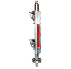 液位计根据浮力原理和磁性耦合作用原理工作的。当被测容器中的液位升降时,液位计主导管中的浮子也随之升降,浮子内的永久磁钢通过磁耦合传递到现场指示器,驱动红、白翻柱翻转180°,当液位上升时,翻柱由白色转为红色,当液位下降时,翻柱由红色转为白色,指示器的红、白界位处为容器内介质液位的实际高度,从而实现液位的指示。加装限位开关实现液位报警与控制。加装液位变送器实现标准信号输出供显示与控制。