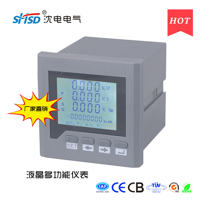 多功能电力仪表(智能配电监控仪)用于配电系统的测量监视与控制。仪表可真有效值测量电压、电流、有功功率、无功功率、视在功率、功率因数、频率、有功/无功电能。6路数字量输入用于监视开关状态,两路继电器输出用于控制开关,两路模拟量输出用于DCS系统或工业监控设备。多功能电力仪表将精确测量、智能化多功能和简单人机界面结合在一起。