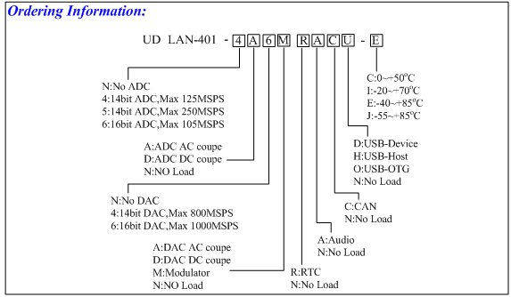UD LAN-401信号处理模块由双通道的A/D采样(最高支持250MSPS/14bit)、双通道D/A回放(最高支持1000MSPS/16bit)、FPGA+ARM(最高支持XC7Z045)及对外的通信接口(100M/1000M以太网、GPIO、CAN或串口等)组成。UD LAN-401外形尺寸为145.2mm(长)* 95 mm(宽)*20mm(厚),采用底面散热的方式,可满足工业级以上用户的要求。