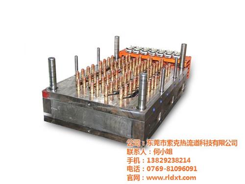 熔融塑料由注塑机注入喷嘴连接板,经热流道分流板流向热喷嘴,到达热喷嘴头后注入型腔。