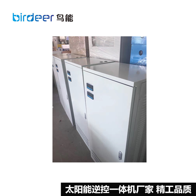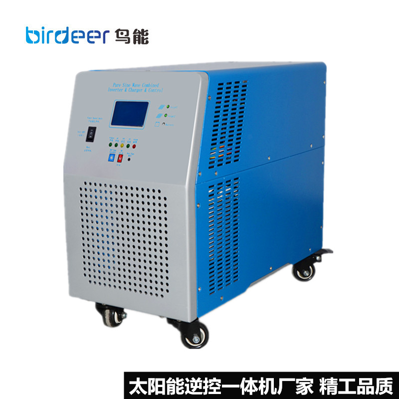 鸟能科技生产的太阳能逆变器控制器一体机是纯正弦波智能型逆变电源。太阳能电池板通过逆控一体机内部的太阳能控制器给电池组充电,同时将蓄电池的DC12V/DC24V/DC48V/DC96V/DC110V/DC220V/DC384V/DC480V/(定制直流电压)的直流电通过太阳能逆变电源变成AC110V/AC220V/AC380V的正弦波交流电,供用户负载使用。本系列一体机接线方便,一键式使用操作。高可靠性受到广大太阳能用户的肯定。