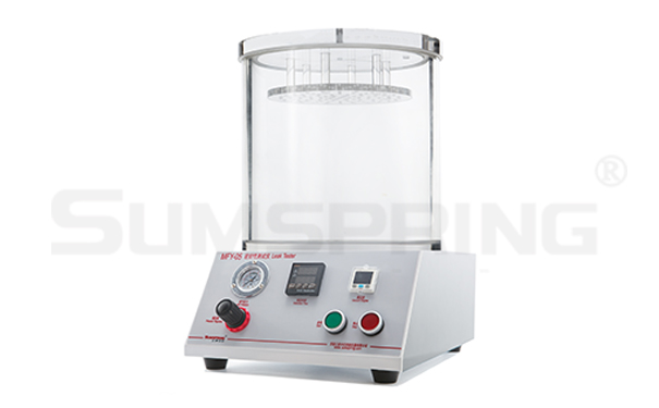 西林瓶密封仪MFY-05A的测试原理通俗来讲即把待测产品浸入水中,对外界抽真空。如果包装袋有泄漏,则象轮胎漏气一样有气泡产生,则可以清楚发现泄漏的地方。