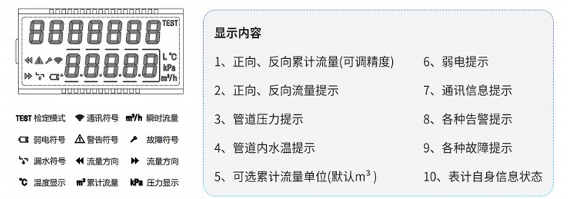 多功能液晶显示,可显示瞬时流量、累计流量和各种告警信息