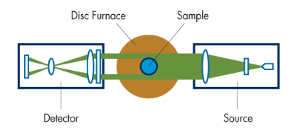 样品被置于盘形炉的中心平台上,不受外力作用。因此,DIL 806 膨胀仪尤其适合测量金属,并且在配备可选的零度以下炉子时可测量塑料样品。
