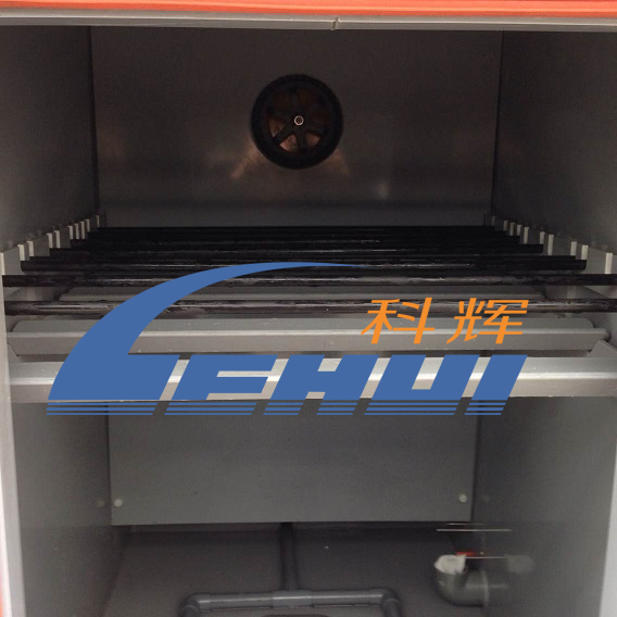 5.设备的维护:每次试验结束后,将箱体底部的废水和过滤室内的碱液收集在一起,充分中和后再用自来水稀释,排到下水道;活性炭一次试验后更换一次。
