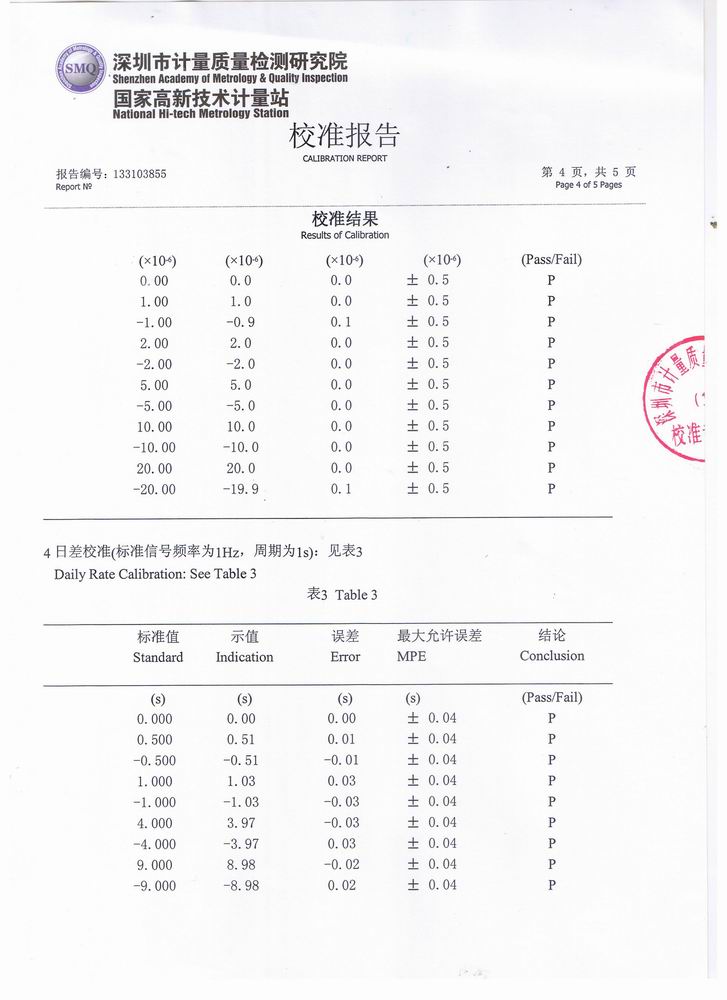 7. 量程:五档可选,PPm(百万分之一误差率),s/d(每日误差),s/m(每月误差),s/y年差,F 时钟频率误差