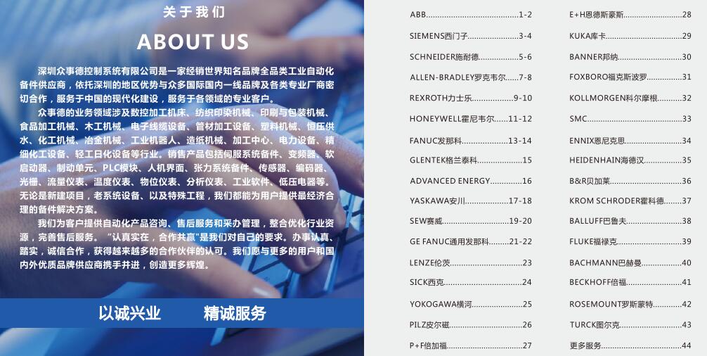 深圳众事德控制系统有限公司是一家专业从事分销进口欧美知名品牌工业传感器、接近开关、编码器、安全防爆产品、物位开关、雷达料位计、电磁流量计、压力变送器、称重传感器等仪表类产品的进出口贸易型企业。