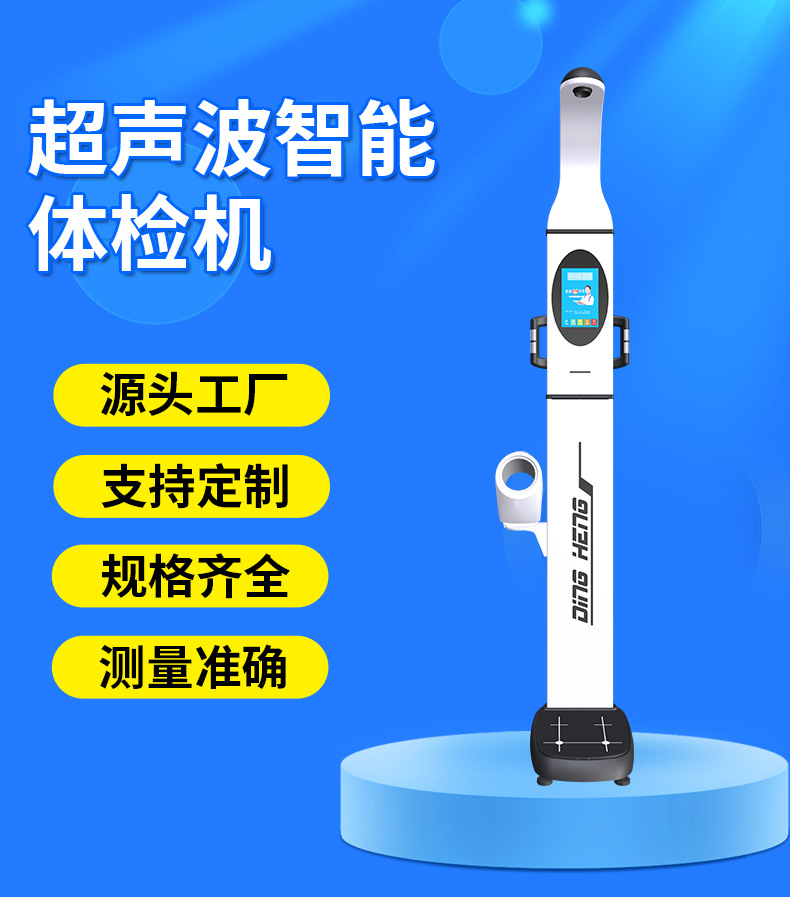 郑州鼎恒智能身高体重血压测量仪 超声波医用人体秤 DHM-Q10C健康检测电子秤测量身高,体重,BMI值,体型判断(偏瘦/正常/肥胖/超重),血压,同时将这四项测量结果直接显示在机10寸液晶显示屏上,可以语音播报测量结果,可以同步自动打印测量报告,可以连接电脑或者管理系统。