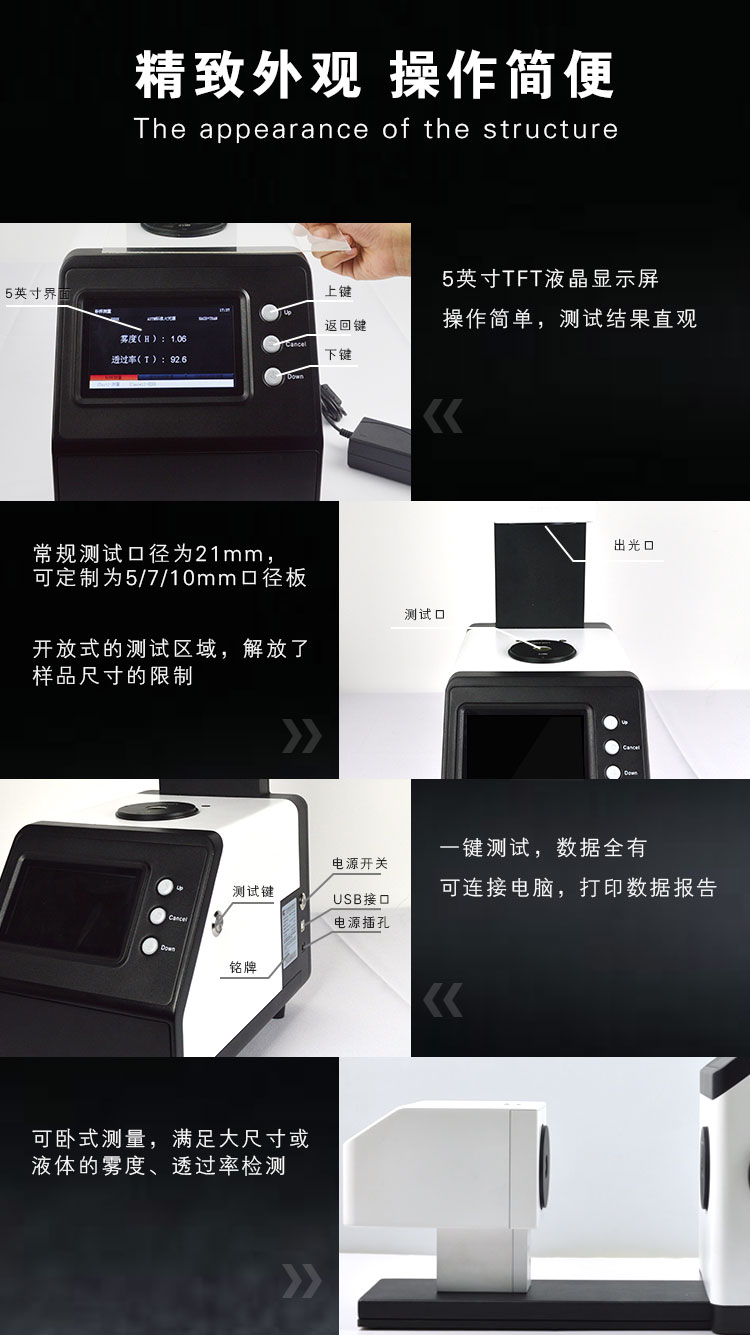 4. 雾度计拥有开放式的测量区域,可以满足任意大小的样品测量。