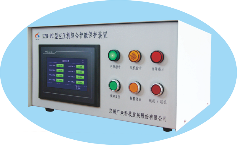 KZB-PC型空压机综合智能保护装置,针对多台空压机和风包,该装置可广泛用于煤矿及非煤矿山工矿企业空压机组的安全保护节能运行。