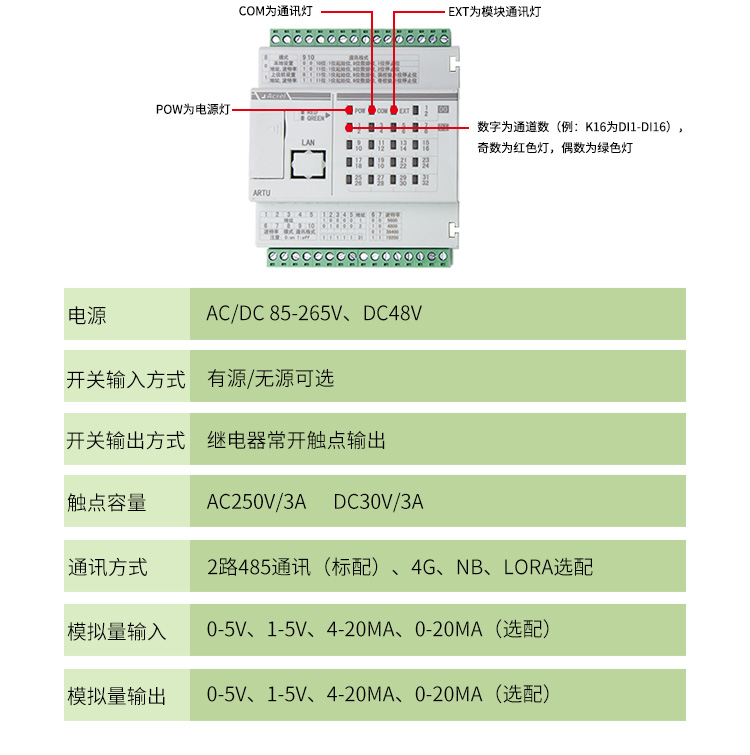 安科瑞8路开关量采集8路继电器输出ARTU-KJ8遥信遥控组