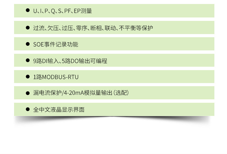 过流、欠压、过压、零序、断相、联动、不平衡等保护.