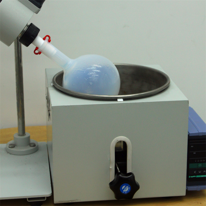 旋转蒸发仪,又叫旋转蒸发器,是实验室广泛应用的一种蒸发仪器,由马达、蒸馏瓶、加热锅、冷凝管等部分组成的。PFA旋转蒸发仪是将常规仪器的玻璃反应部分全部替换为PFA材质,以达到耐HF(强酸强碱及有机溶剂)、耐高温的作用。