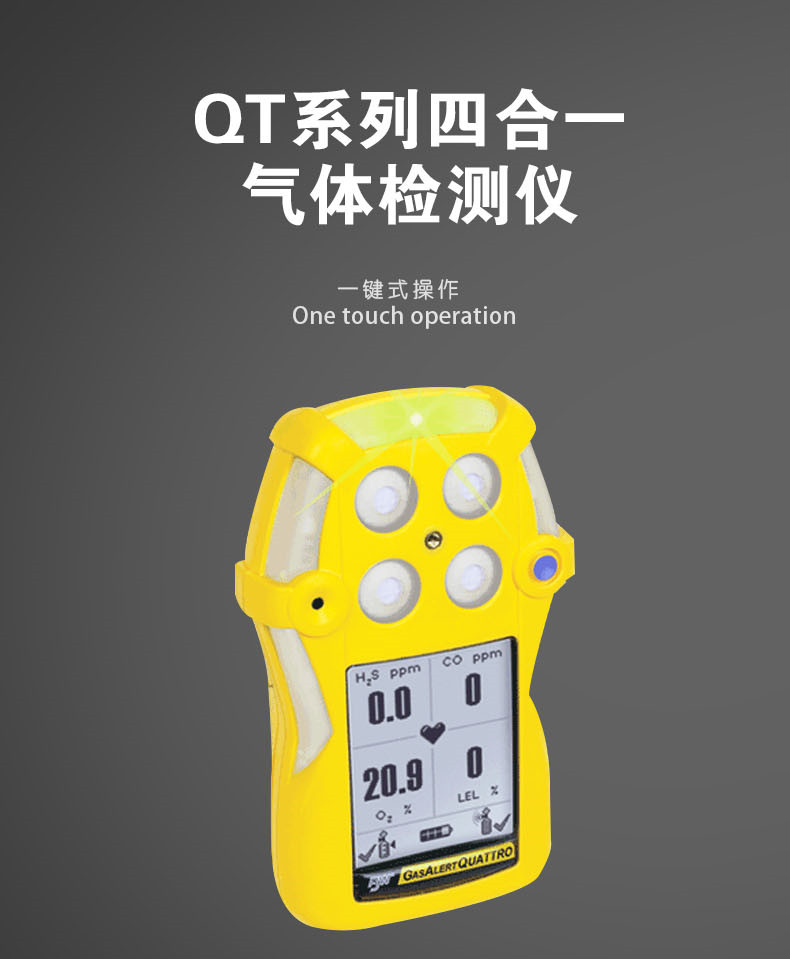 GasAlertQuattro四种气体检测器具有一键式简易操 作等诸多功能,坚固耐用且运行可靠。 GasAlertQuattro采用灵活的供电方式,可随时使用。液晶图形屏幕显示易于识别的指示操作信息的图标,如:冲击测试和校准状态,便于现场审 核。IntelliFlash不断以视觉方式确认检测器正确运行与合规。