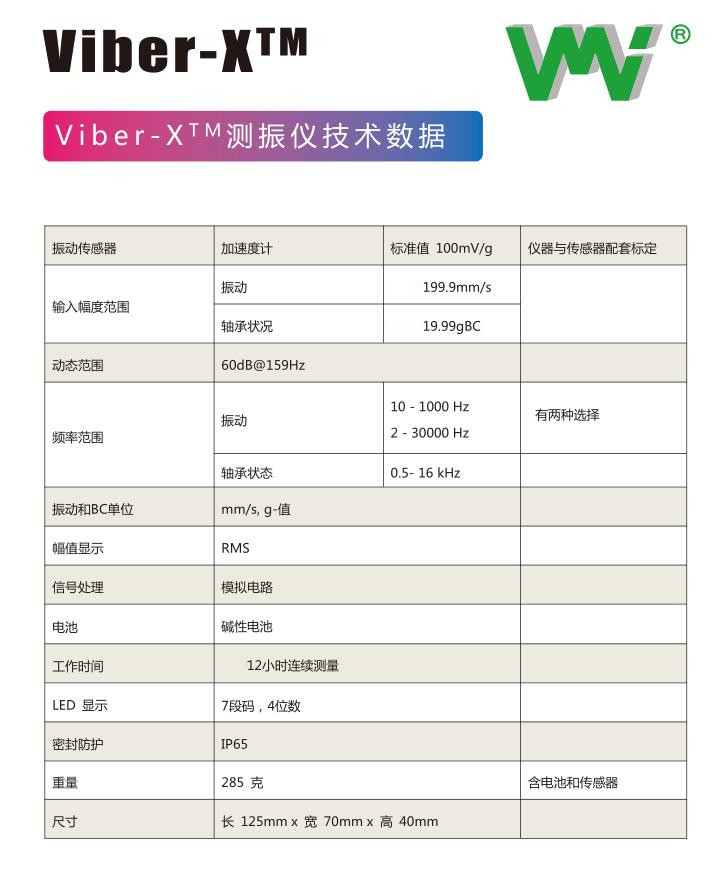 精密电机轴承巡检测振仪 VIBER-X TM 手持式测振仪用于工厂特别是对旋转机器的预测维修和主动维修工作。完整的组件包括仪器,便携包,振动传感器和传感器固定磁座。