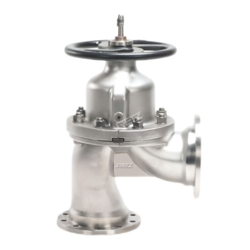 进口角式隔膜阀采用橡胶隔膜时,即使流体内有些异物夹杂也能完全切断,适合含有弱酸、弱碱、无机盐、粘性流体、石灰浆等的控制When the imported angle diaphragm valve adopts a rubber diaphragm, it can completely cut off even if there are some foreign objects in the fluid, suitable for control containing weak acids, weak alkalis, inorganic salts, viscous fluids, lime slurry, etc