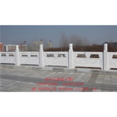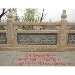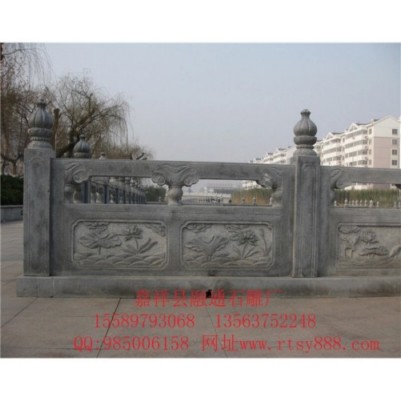 石雕栏杆是在甲板、平台、走道和棚顶等边沿设置的围栏。也是桥梁和建筑上的安全设施,要求坚固,且要注意美观。从形式上看,栏杆可分为节间式与连续式两种。前者由立柱,扶手及横挡组成,扶手支撑于立柱上;后者具有连续的扶手,由扶手,栏杆柱及底座组成。常见种类有:木制栏杆、石栏杆、不锈钢栏杆 、铸铁栏杆、铸造石栏杆、水泥栏杆、组合式栏杆。 石雕栏杆有着美观、时尚、环保、抗老化、不变形的性能优点,可广泛用于市政、水利、公园、交通桥梁 等护栏工程。石雕栏杆种类繁多 各种石材、石料都可制作,市面上常见的石栏杆有青石栏杆、汉白玉栏杆、花岗石栏杆。